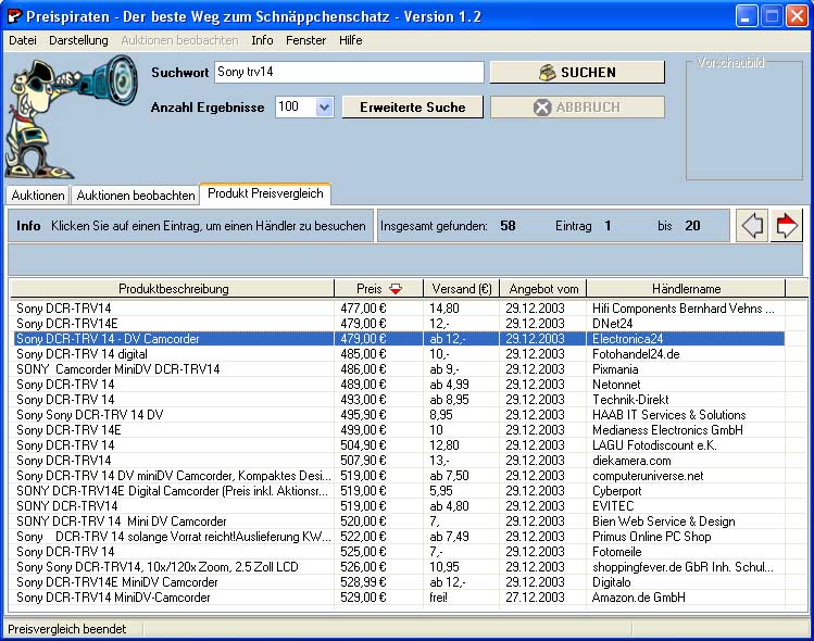 Das tolle ist, dass das Programm wirklich funktioniert. Wenn man nur Online-Shops durchsuchen möchte, kann selbstverständlich auch die Auktionshäuser ausblenden. Hierzu klickt man nach der Preisrecherche auf den Writer